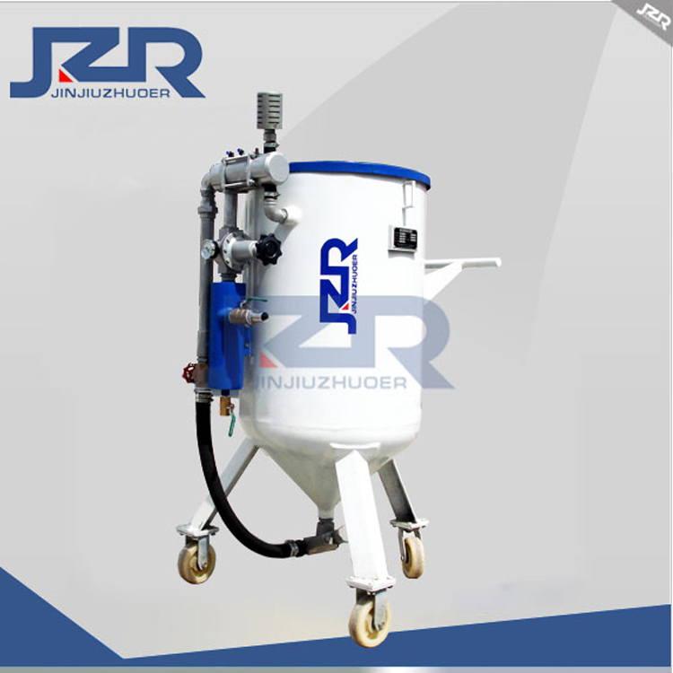 The JZK-600P press in sandblasting machine is suitable for sandblasting rooms, sandblasting rooms, and open sandblasting operations in the wilderness. It is used for the treatment of oxide scales on special and hard materials. This equipment has high pressure and high efficiency sandblasting performance, and is one of the ideal equipment for cleaning, removing rust, paint, scaling, strengthening surfaces, and eliminating internal stresses on the surface of large metal structural components before coating. The difference between this equipment and JZK-600S sandblasting machine is that it is equipped with a pneumatic remote control device, which enables 20 meter remote sandblasting control. It can be combined with our company's JZF sand and dust separation device to form the JZF-600 split recycling sandblasting machine, achieving dust-free, pollution-free and environmentally friendly sandblasting.